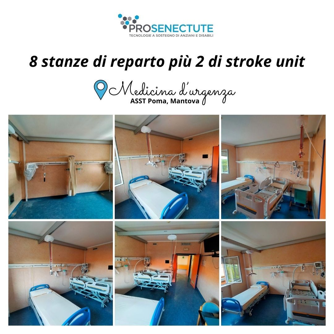 Siamo lieti di annunciare la realizzazione di 8 stanze di reparto e 2 di stroke unit presso l'ASST di Mantova, equipaggiate con sollevatori di ultima generazione di Pro Senectute.